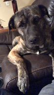 Was adopted from Louisburg, Kansas and joined the ranch September, 2017. She is a Mastiff mix. She likes to explore and loves attention. Does go out on trail rides and help with chores.